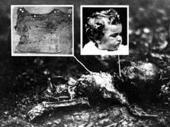 |  チャールズ・リンドバーグ・ジュニアの遺体 |  それから5週間が経った5月12日、2人のトラック運転手がリンドバーグ邸から7キロほど離れた林の中でジュニアの遺体を発見した。その腐敗の状況から、誘拐された直後に殺害されたものと推定された。 |