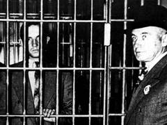 |  ブルーノ・ハウプトマン |  ハウプトマンはまさに警察が犯人像として望んだ通りの人物だった。ドイツ生まれの大工で、しかも前科者だった。ドイツで強盗を働き、仮釈放されたのを機にアメリカに密入国したのである。その背格好も「ジョン」に一致している。逮捕された時に所持していた20ドルの金兌換紙幣はすべて身代金の紙幣番号と一致した。更に、彼のガレージからは念入りに隠された1万4千ドル分の身代金が発見された。 |